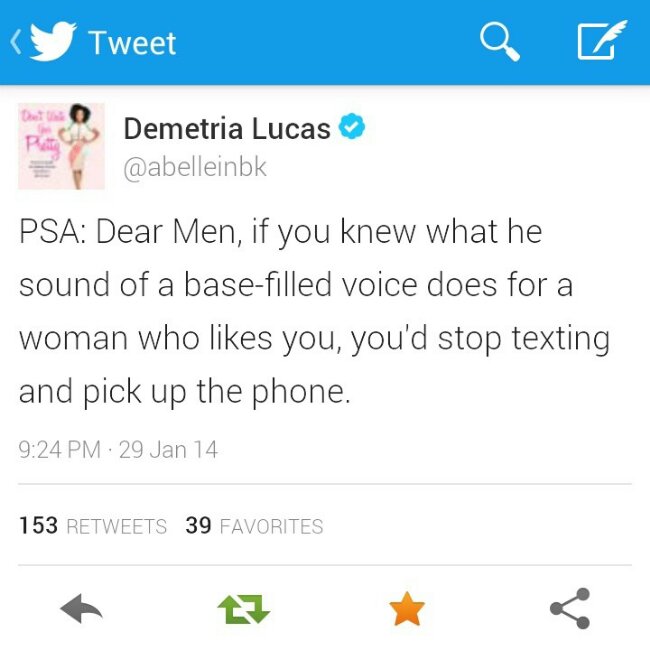 I’ve put several men in the “never-taking-him-seriously” category for always texting, versus calling — bass-filled voice aside.